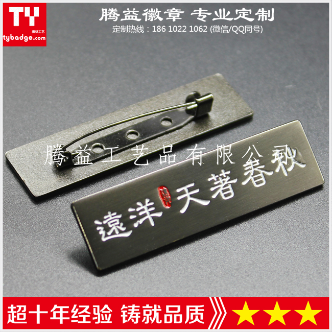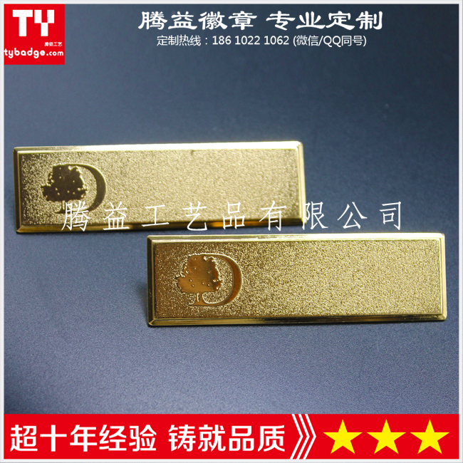 主要工藝有:蝕刻(咬板)、壓沖、注漆(填油)、絲印、滴膠、仿琺瑯、鋅合金壓鑄、柯式印刷等。材料可選用銅、鐵、鋅合金、馬口鐵、亞克力、鋁、鉛錫合金、PVC等材料。