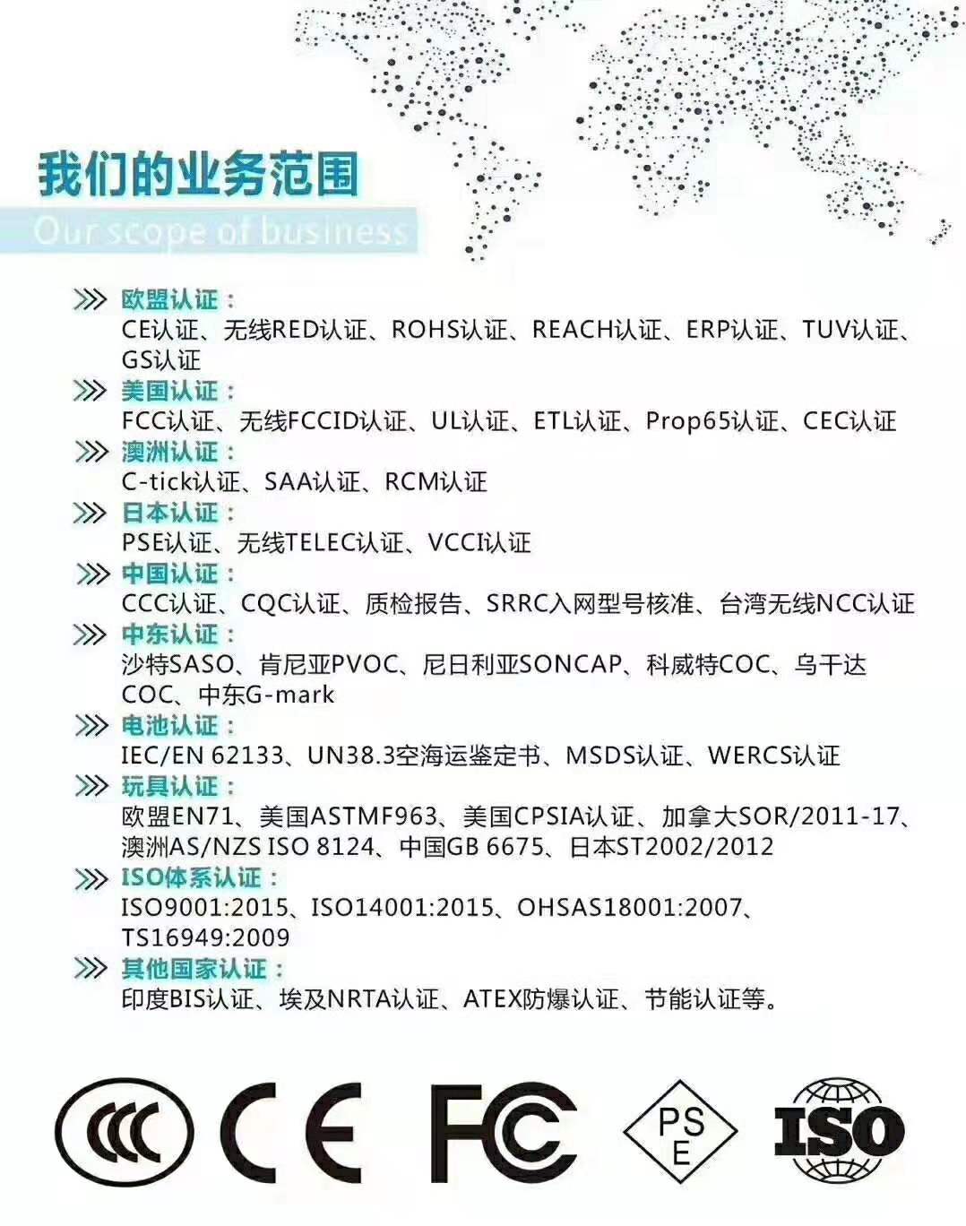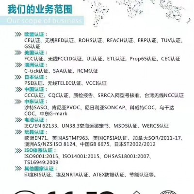 ISO體系認證:ISO9001:2015、ISO14001:2015、OHSAS18001:2007