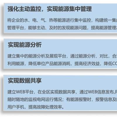 1、能耗數據采集:能耗統計可將各種能耗介質(水、電、氣、暖等)以及企業中各部門及各監測點實際用能情況,通過不同的展示方式展現出來。