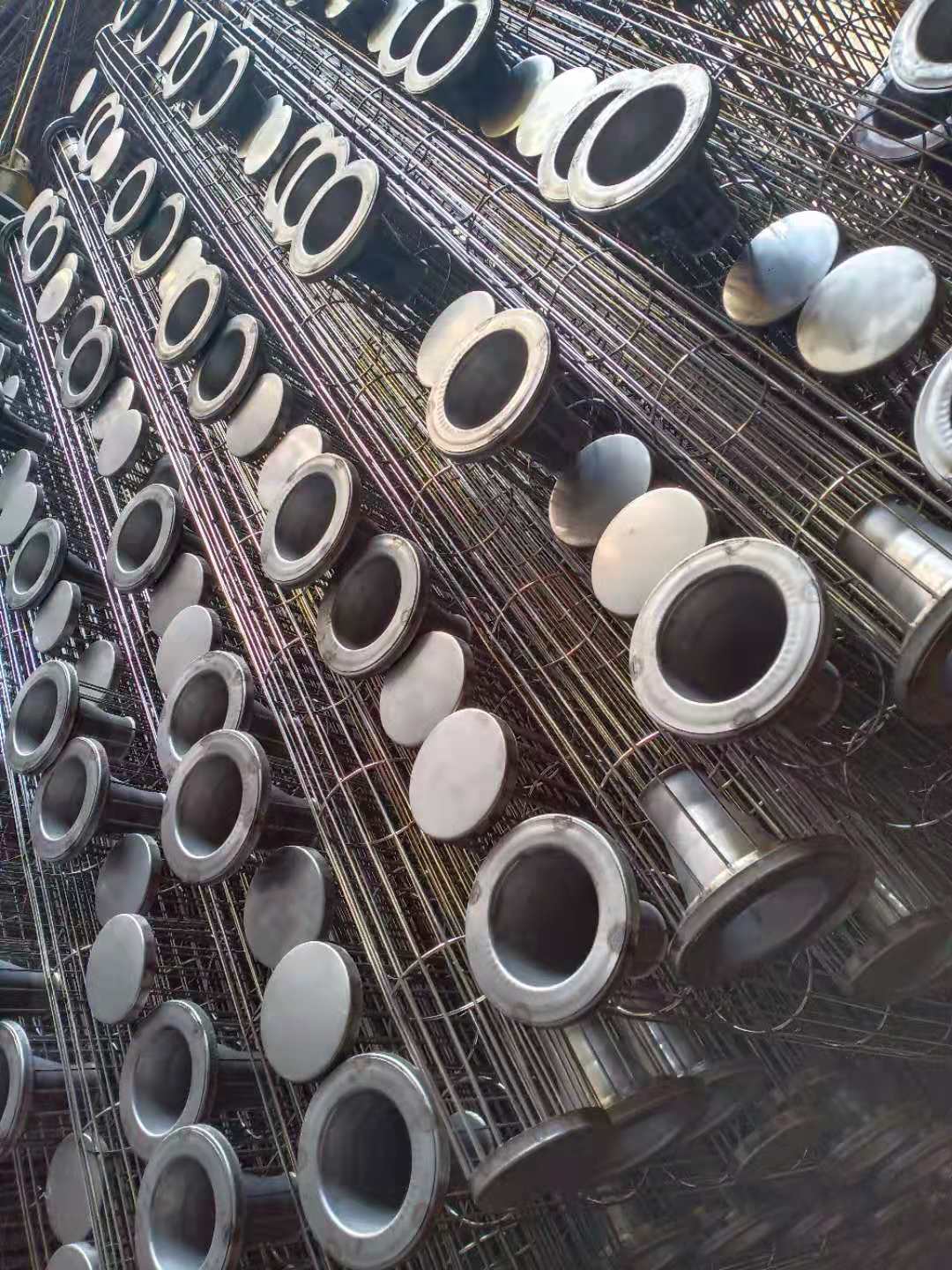 除塵骨架用在不同的重金屬行業中,隨著現在除塵技術的提高,除塵骨架用在百萬風量的除塵器越來越多,因此,除塵骨架(袋籠)必須有足夠的強度、剛度、垂直度和尺寸的準確度,以防受壓變形,運輸中損壞、濾袋裝入除塵器后相互接觸以及裝袋困難、袋框摩擦等情況的發生。為了避免除塵骨架在使用一段時間后發生表面銹蝕與除塵布袋黏結,我們所焊接的除塵骨架要牢固,不可以有脫焊、虛焊和漏焊,布袋和骨架接觸的表面應該手感光滑,不可以有焊疤凹凸不平和出現扎手的毛刺,除塵骨架不但表面噴塑、涂漆或電鍍的防腐處理,而且防腐處理劑應該滿足除塵器的高溫。