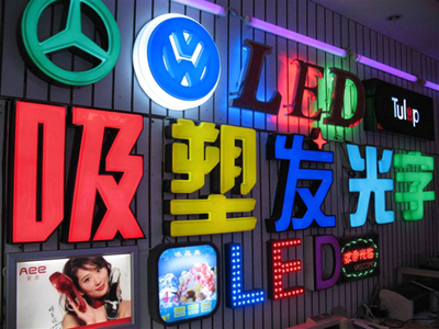 產品簡介:吸塑字也是一種發光字,板面通常使用亞克力板吸塑成型,再由底座等組合而成。其內部置入LED燈或是高壓燈,表面工藝有平面、平鼓、球鼓、棱鼓等形式,箱體材料有鐵皮烤漆、鋁型材、不銹鋼、鈦金等。