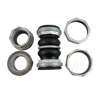 橡膠接頭又叫做橡膠管軟接頭、柔性橡膠接頭、橡膠軟接頭、可曲繞橡膠接頭、高壓橡膠接頭、橡膠減震器、補償器等。按連接方式分松套法蘭式、固定法蘭式和螺紋式3種;按結構可分為單球體、雙球體、異徑體、彎球體及風壓盤管等5種。由內外層膠、簾布層和鋼絲圈組成管狀橡膠件,經硫化成型后再與金屬法蘭或平行接頭松套組合而成。此產品可降低振動及噪聲,并可對因溫度變化引起的熱脹冷縮起補償作用,廣泛應用于各種管道系統。