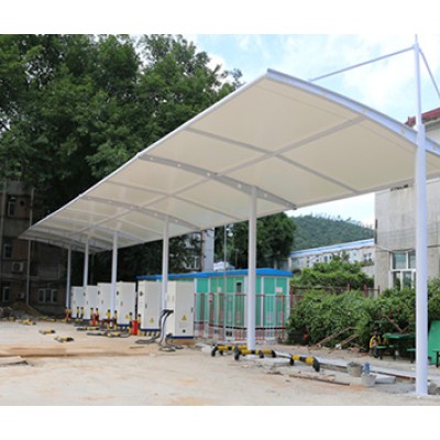 2、有的車棚選用持久性膜材,可運用三、四十年。 特別是遇到劇烈的暴風雨氣候,膜結構修建巍峨不動,毫發不損。二、經濟性。長時間露天停放的車輛,性能損耗速度比車棚內停放車輛快一倍。