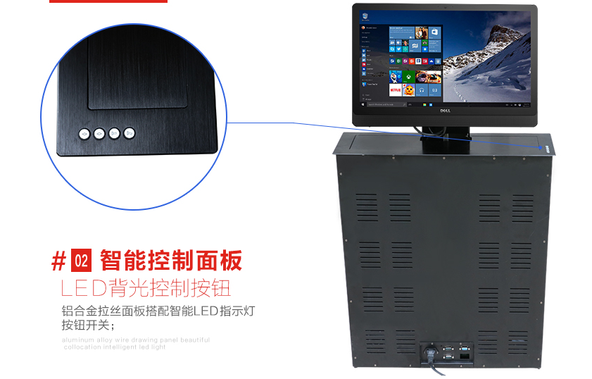 1、液晶屏升降器面板氧化鋁合金拉絲。