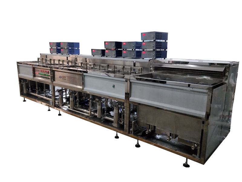 1環保溶劑超聲清洗→2環保溶劑超聲清洗→3環保溶劑超聲清洗→4洗劑去環保液→5強堿超聲清洗→6洗劑超聲清洗→7回用RO水超聲清洗→8洗劑超聲清洗→9洗劑超聲清洗→10RO水超聲清洗→11RO水超聲清洗→12純水超聲漂洗→13純水超聲漂洗→14離心甩干。