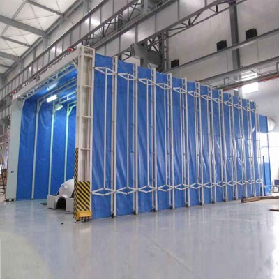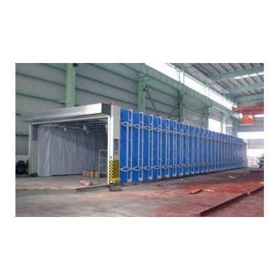 全自動(dòng)可移動(dòng)噴漆房 折疊軌道伸縮房伸縮移動(dòng)噴漆房是一種可以在使用時(shí),可以自動(dòng)展開形成封閉或半封閉的環(huán)保噴漆房,不使用時(shí)收縮合攏到一處的特殊環(huán)保噴漆房設(shè)備,他是先進(jìn)油漆房的設(shè)計(jì)理念及技術(shù)的集成,使其應(yīng)用范圍非常廣泛。伸縮移動(dòng)式噴漆房專門解決較大型工件移動(dòng)運(yùn)送困難而研制的實(shí)用型環(huán)保噴漆房,它可根據(jù)使用大小,任意調(diào)整,充分利用生產(chǎn)場地和操作空間!它在生產(chǎn)上大大簡化了不斷用天車吊運(yùn)大型笨重工件來回周轉(zhuǎn)的工藝流程;而無需專門的運(yùn)輸工具;展開長度可以在任意位置。