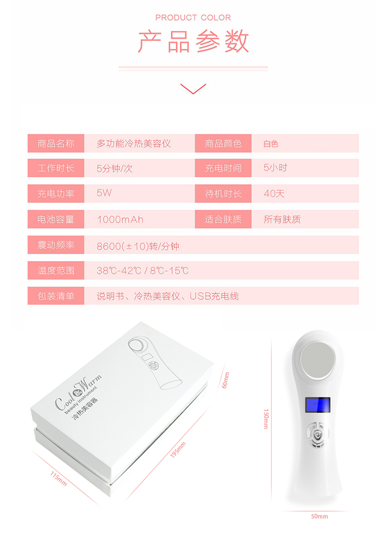 本網頁所展示的有關 東莞市花無缺電子科技有限公司 為你提供的“冷熱美容儀器家用臉部導入美容儀導出潔面儀多功能冷熱儀護膚神器”美容儀器價格、型號、圖片、廠家等信息。如有需要請撥打電話:13532398179。