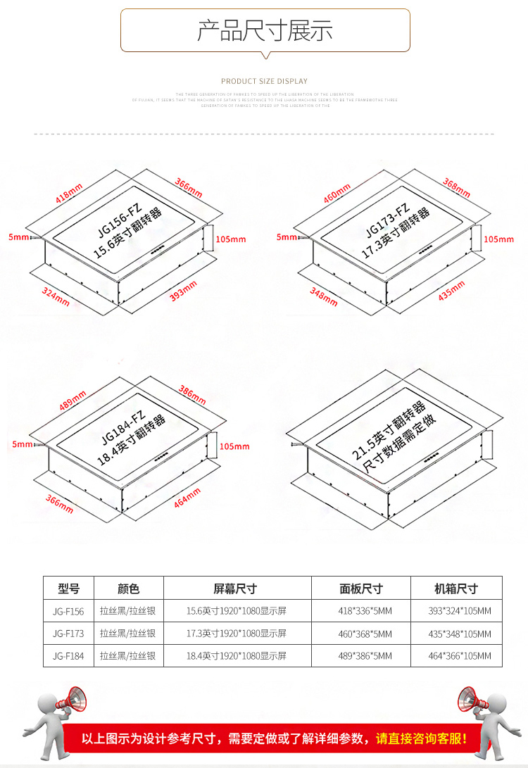 型號(hào):JG156-FZ | 顯示屏尺寸:15.6/17.3/18.4英寸 |