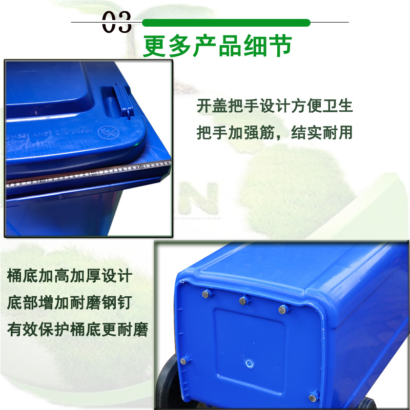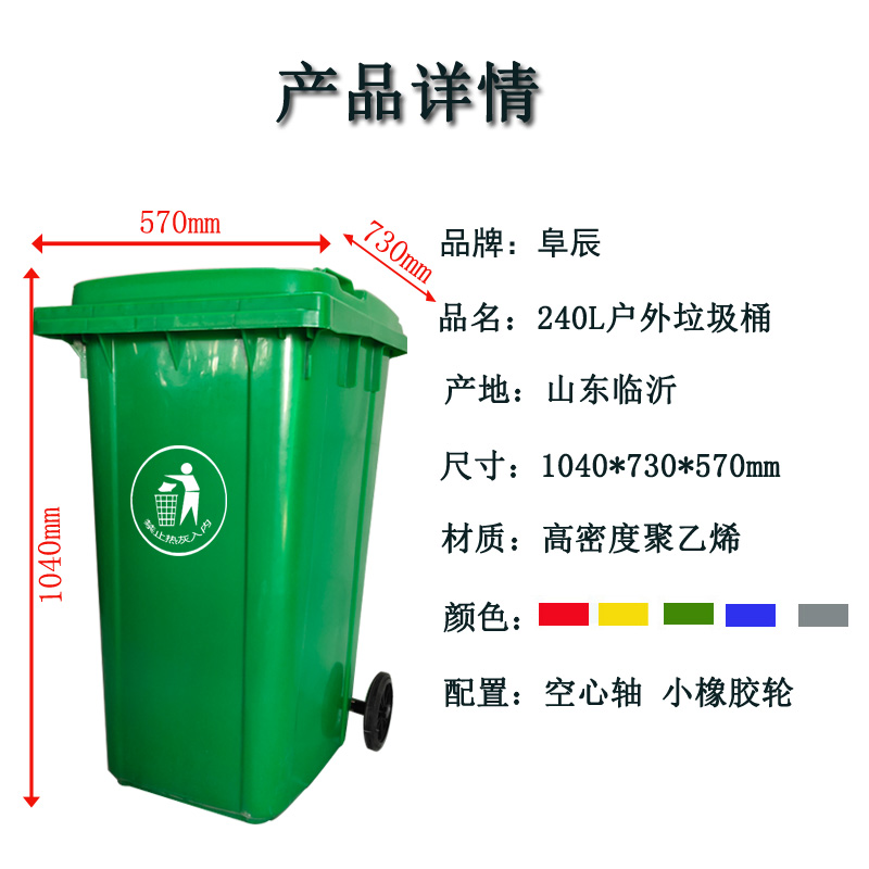 垃圾桶廠家山東阜辰塑業,良心報價,產品規格齊全,品種多樣,實用且美觀,支持定制。為您提供校園垃圾桶、小區垃圾桶、環衛垃圾桶、醫療垃圾桶等。規格型號涵蓋15L、20L、30L、40L、50L、100L、120L、240L、360L、660L等規格。垃圾桶生產精工制作,采用高密度聚乙烯,從材料到生產嚴格控制把關,售后服務周到,歡迎咨詢問價。
