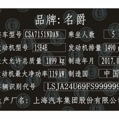 山東京園光能科技有限公司,生產制作汽車柔性出廠銘牌條碼標簽、汽車VIN碼、汽車大燈出廠標簽、汽車發動機標簽、汽車胎壓標簽、汽車大燈標簽等汽車易碎防偽銘牌標簽產品。名爵汽車出廠銘牌條碼標簽制作,上汽名爵汽車出廠銘牌條碼標簽定制。
