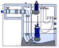 適用于長(zhǎng)期固定的使用場(chǎng)合,具有安裝、維修方便等優(yōu)點(diǎn)。該系統(tǒng)使用的底座,固定在污水坑的底部,與出水管連結(jié)好,在池頂安裝好配套的支承塊,用導(dǎo)桿使二者相連,水泵與特定支架連結(jié)好.沿導(dǎo)桿下滑到達(dá)底座,與其自動(dòng)耦合、密封、密封,而提升時(shí)則自動(dòng)脫落。