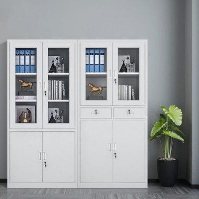 這款文件柜采用四門推拉式設計,柜門開合靈活,存取文件時無需占用額外空間,尤其適合工位緊湊的辦公區域。柜體選用優質冷軋鋼板搭配靜電噴涂工藝,表面細膩光滑且不易留下劃痕,長期使用也能保持整潔外觀,同時具備防銹耐磨的特性。柜門采用上玻下鐵的組合設計,上半部分透明玻璃方便快速查找文件,下半部分鋼板則兼顧隱私存放需求,分類收納更清晰。