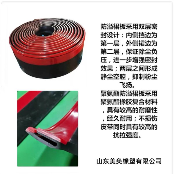 山東美奐是一家生產(chǎn)防溢裙板、雙密封防溢裙板、緩沖床,緩沖條,皮帶機(jī)清掃器,清掃箱,各種橡膠板,滾筒包膠橡膠板,菱形膠板,陶瓷膠板,聚氨酯滾筒包膠,聚氨酯制品,聚氨酯耐磨襯板,導(dǎo)料槽擋塵簾,煤礦巷道除塵簾等皮帶*輸送的廠家。