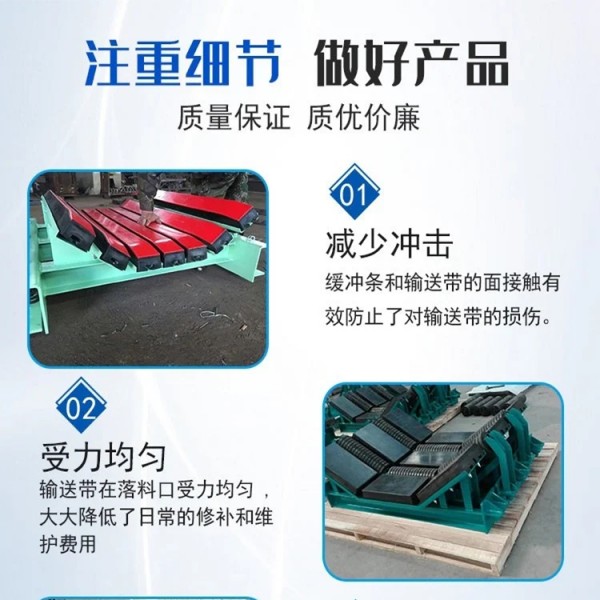 相比于傳統的緩沖托輥,緩沖床具有明顯的優勢。傳統緩沖托輥的支撐力差且不均勻,不能很好地吸收物料下落時的強大沖擊力,容易砸壞支撐輥,造成皮帶縱向撕裂隱患。而緩沖床則能夠更好地吸收沖擊力,保護皮帶不受損害。