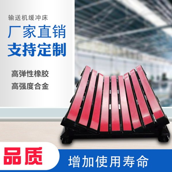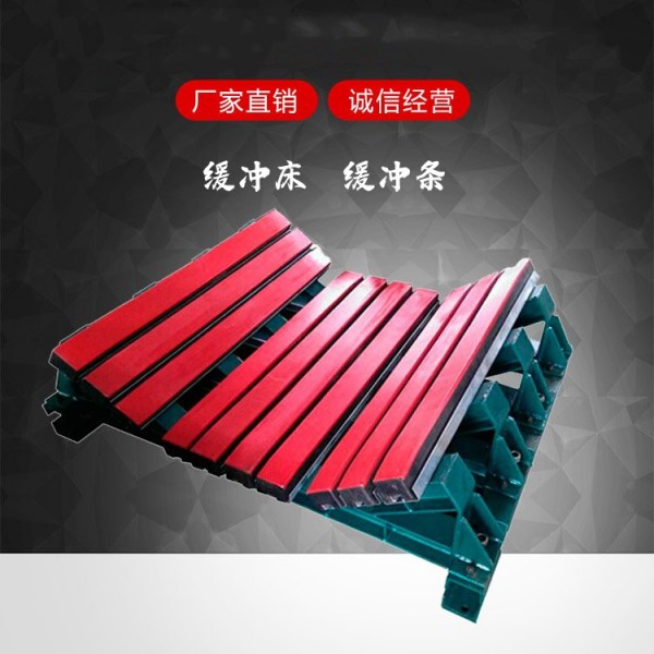 緩沖條是由橡膠、金屬型材(鋼件或鋁型材)、高分子量聚乙烯(UHMW-PE)板材通過熱硫化工藝粘合而成的組合件,主要應(yīng)用于輸送機進料口,替代傳統(tǒng)緩沖托輥,通過“吸收+低摩擦”特性緩解落料沖擊力,有效防止物料對輸送帶的沖擊損傷。