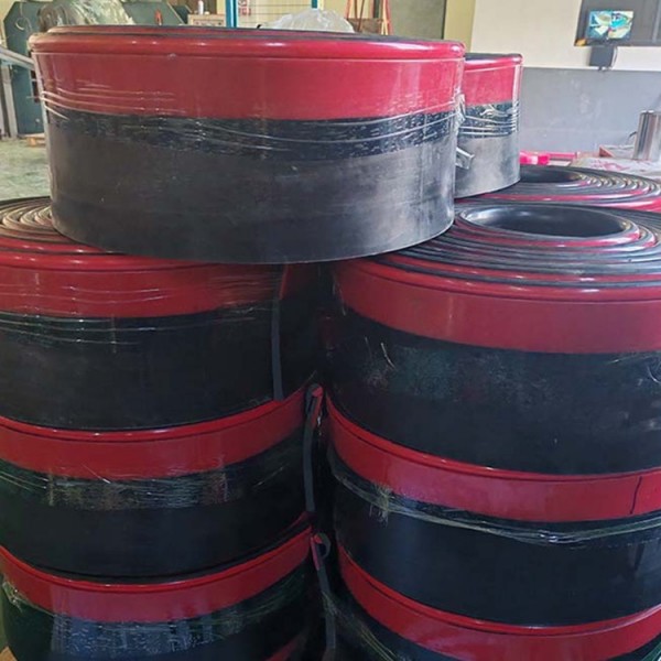 1. 防溢裙邊的主體部分為黑色,采用 橡膠和丁苯橡膠混煉而成,在保持挺括的基礎(chǔ)上增加彈性,使紅色的多防護(hù)密封條緊密的貼服在輸送帶上,甚至當(dāng)多護(hù)系統(tǒng)達(dá)到使用即將磨損完后還能夠繼續(xù)履行防溢裙邊的防溢效果。