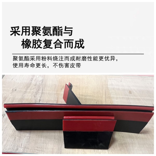 2、防溢裙板高度可根據(jù)導(dǎo)料槽的實(shí)際尺寸適當(dāng)調(diào)整。采用了橡膠添加半凝固潤(rùn)滑劑的方式,解決了以往防溢裙邊高的同時(shí),容易損傷皮帶的難題。該材質(zhì)質(zhì)地柔韌,彈性優(yōu)良,避免了聚氨酯(PU)不耐水的缺點(diǎn),高的同時(shí)不損傷輸送帶。