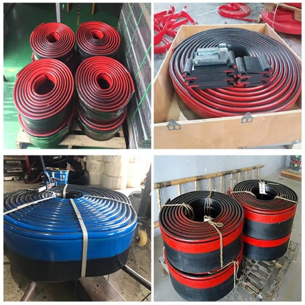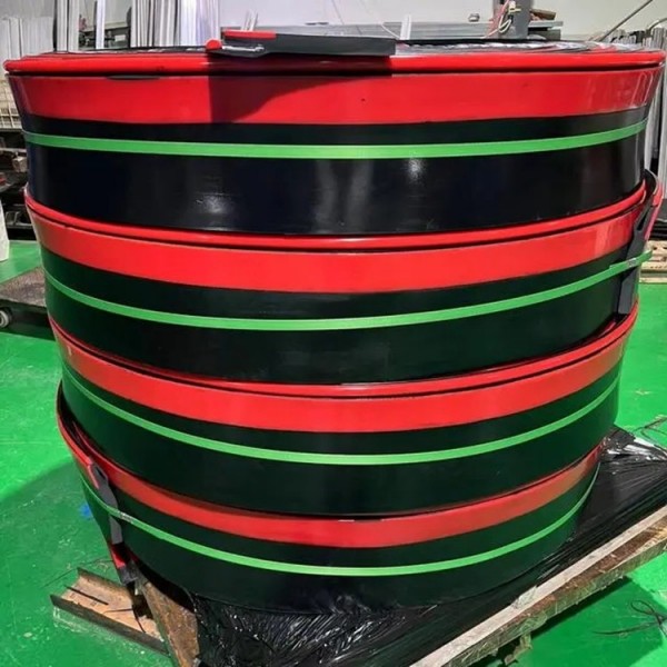 聚氨酯橡膠防溢裙板是帶狀、底部雙層的橡膠板,與皮帶接觸的部分因要長期經受巨大的摩擦力,所以該部分我們一般采用聚氨酯山東美奐橡塑有限公司3塊,聚氨酯具有的耐磨性。聚氨酯塊和橡膠板采用熱LIU化工藝結合,能保證承受長時間的摩擦不與橡膠分離。