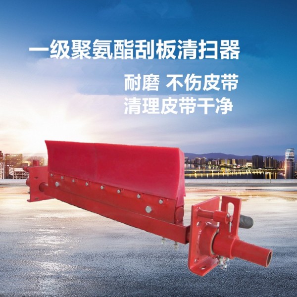 為了提*率,要有多樣化的清掃器有效清c粘附物,而不存在損壞皮帶、接頭或清潔系統的風險,好的解決方法是提供一個有多級清掃器的系統。不同的清掃器,不同的作用一級清掃器是安裝在頭部滾輪上,能刮去粘在皮帶上的大多數物料。一個或多個二級清掃器能刮去殘留在一級清掃器之后的細小物質。