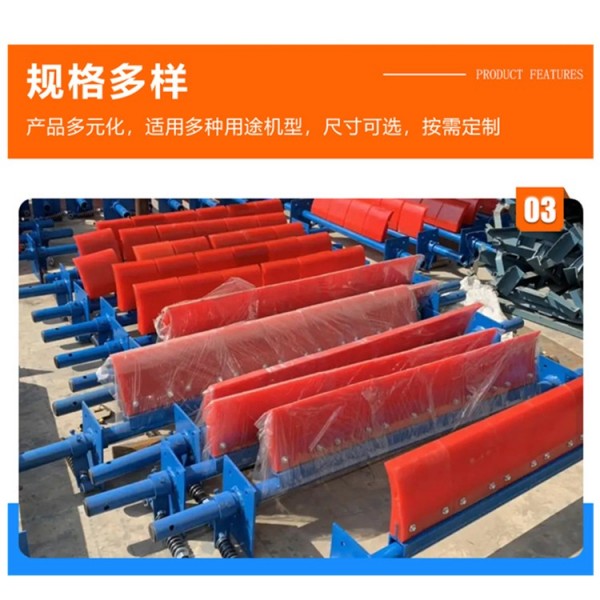 結構形式多樣,可適用于各種不同接頭的輸送帶及各種不同物料的清掃。