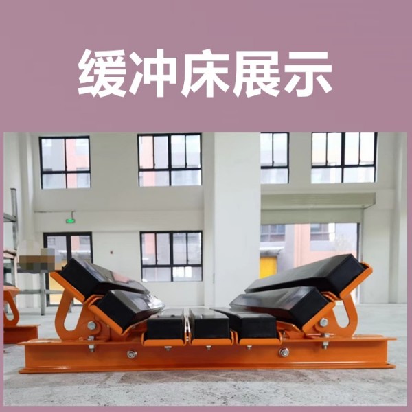 工礦條件較為不好,如落料高,物重大,密度大時,常規緩沖床無法滿足需求,這時可選用重型緩沖床或彈簧式緩沖床。重型緩沖床是緩沖托輥與緩沖床的組合體,結合二者優點,提供面與面接觸的同時保證皮帶機順滑通過。