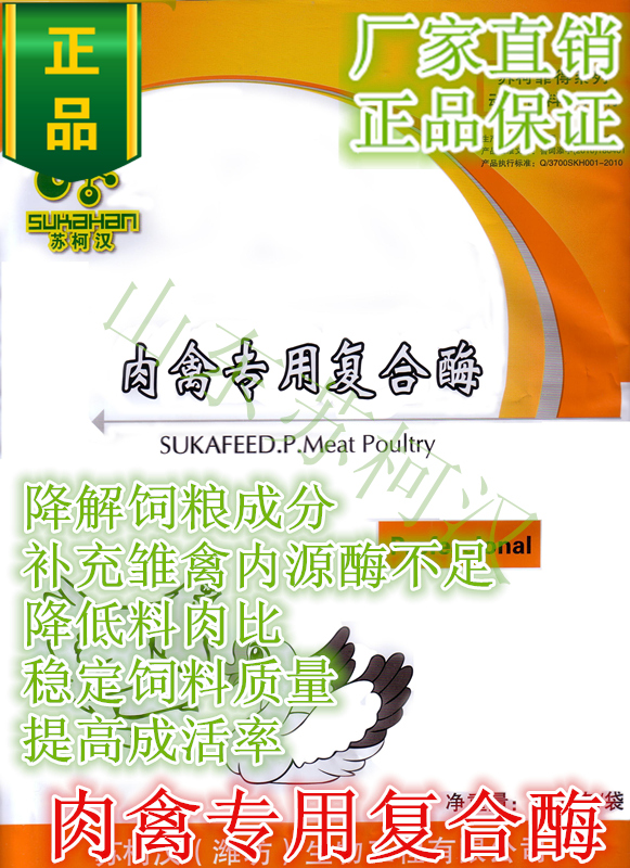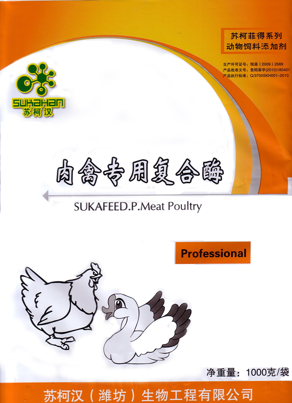 肉禽消化道短,食物在腸道中停留時間短,生長速度快,對飼糧要求高,而成本制約著飼料原料的利用。蘇柯漢(濰坊)生物工程有限公司動物營養學家根據肉禽動物消化生理特點和原料營養結構特點,研制出肉禽專用復合酶制劑,有效調節生長速度快,疾病多,飼糧利用率低等問題。
