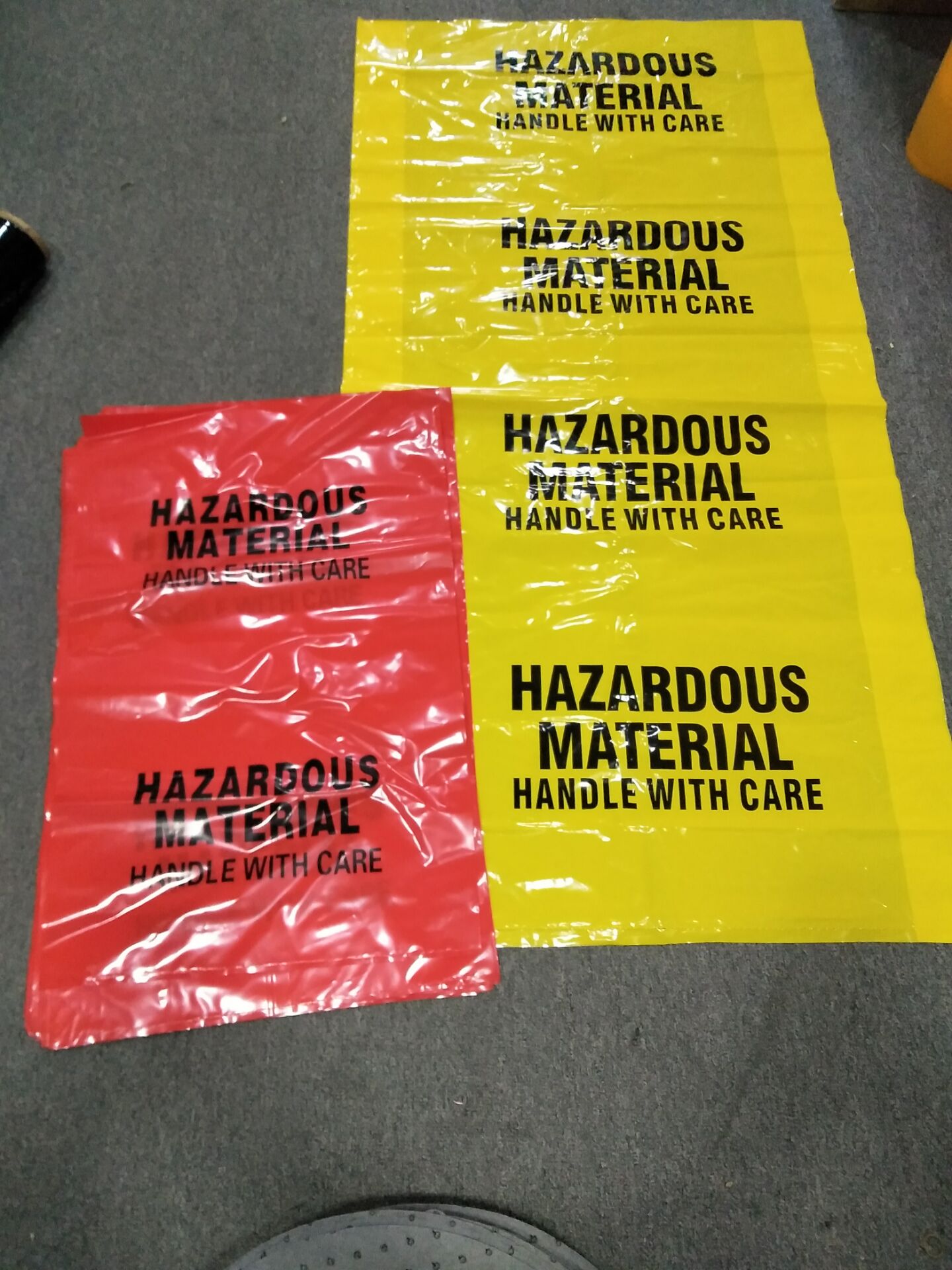 防化垃圾袋,又稱為“有害廢物垃圾袋”、“有害廢物處理袋”。英文名稱為 “Hazardous Waste Bags”、 “Hazardous Material waste bags”、“Hazardous Material Disposal Bags”。材質厚度顏色編輯一般為堅韌的聚乙烯材質,少數也有PP聚丙烯材質的。單面的厚度一般在8絲。當然,也可依據實際 需要,做得比8絲更厚。顏色一般為黃色,這樣就更顯眼,更易識別。袋子上一般印有“有害廢物”的警示的內容或者“小心處理”的警示內容。 Carries bold "Caution Handle With Care" reminder。