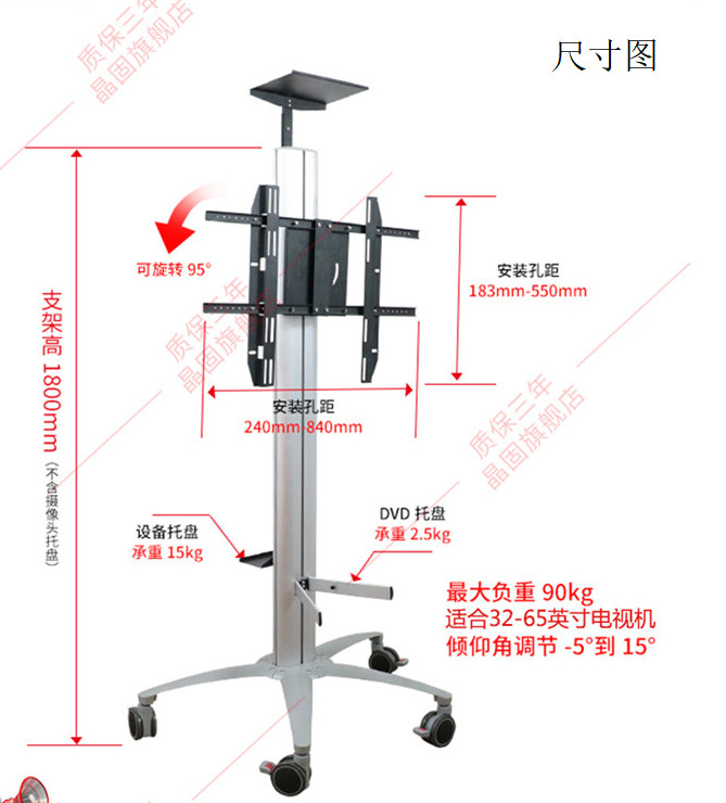適應尺寸:適用于有安裝孔的32-65英寸電視機 |