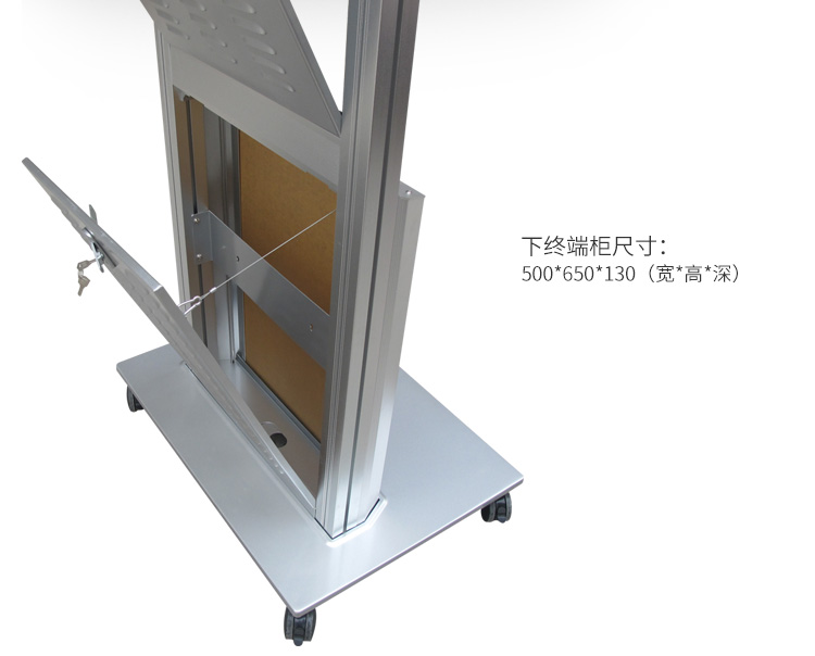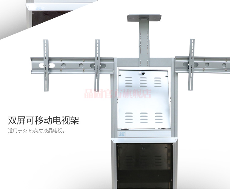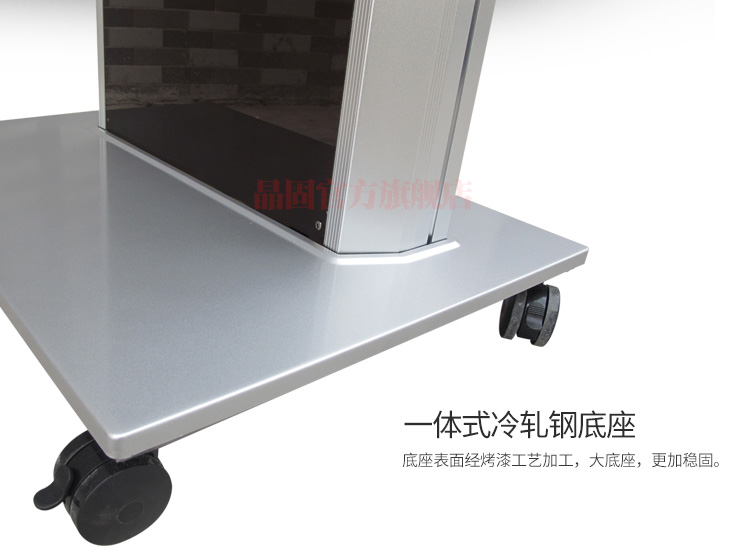 產品介紹:單屏可移動電視架:適用于32-75英寸的液晶電視。雙屏可移動電視架:適用于32-65英寸的液晶電視。功能齊全,適用便捷,配有功能齊全的上下兩層終端柜,占用空間小,適用方便,是您會議,休閑的好助手。亞克力面板,表面光亮,更美觀。鋁合金立柱更承重。電視高度可以上下自由移動。隱藏式走線設計,外觀美觀簡潔。一體式冷軋鋼底座,經烤漆工藝加工,大底座,更加穩固。應用領域:視頻會議室,展廳,候車廳,酒店會議室等場所