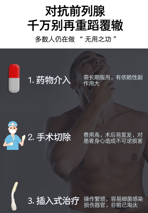 通過清理長期淤積腺體,堵塞微循環的有毒物質,恢復前列腺正常供養,修復受到病變損害的前列腺細胞,使腺體回縮至正常大小,消除尿頻,尿急等癥狀;